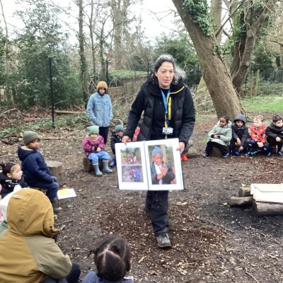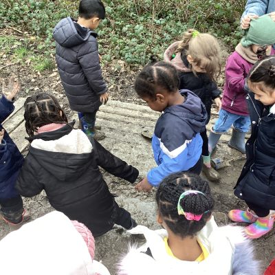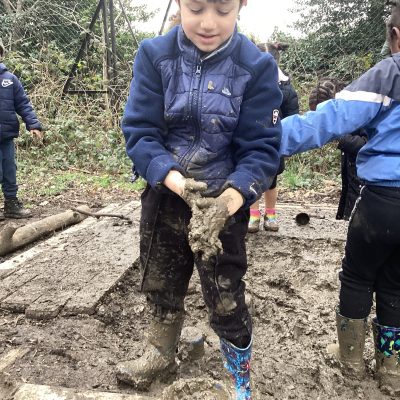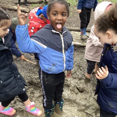 After a delay due to the continuous rain last month, Reception finally got to go to Ally Pally for their Forest School Experience. It might have stopped raining but it was still very muddy but the children were dressed up with their wellies and waterproofs and most of them took delight getting up close and personal with the mud.